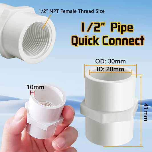 Accesorios de tubería de PVC blanco de 10 piezas, conector de tubería de PVC de hilo femenino de 1/2 NPT