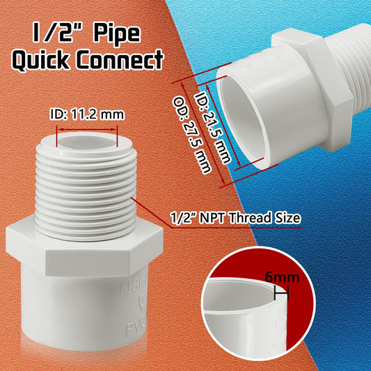10 piezas de accesorios de tubería de PVC blanco, conector adaptador de instalación de tubería de PVC de rosca macho 1/2 NPT