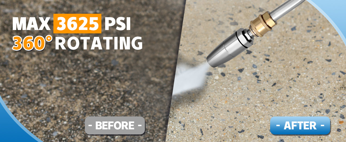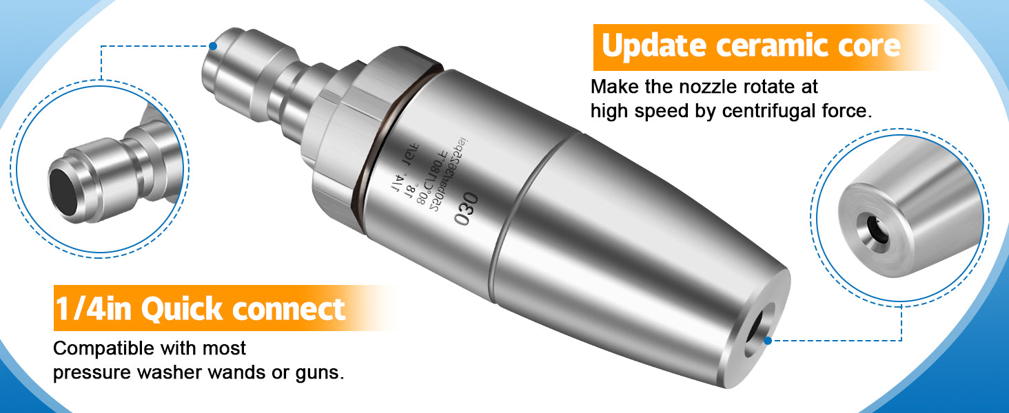 - Efficacité de nettoyage améliorée : la buse turbo du nettoyeur haute pression offre une forte puissance de nettoyage de 3,0 GPM, dispose d'un noyau en céramique intégré et d'une fonction de rotation à grande vitesse, ce qui la rend idéale pour éliminer facilement la saleté tenace, la crasse et les taches. économisez votre temps.