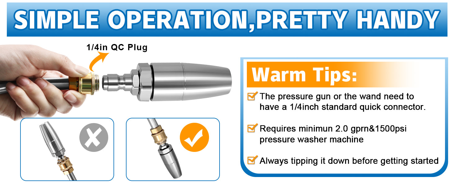 - Compatibilité : les embouts de nettoyeur haute pression sont équipés d'un raccord rapide 1/4 pratique, cette buse turbo peut être facilement fixée à la plupart des pistolets ou baguettes de nettoyeur haute pression, offrant une connexion sécurisée et sans tracas pour un fonctionnement fluide.