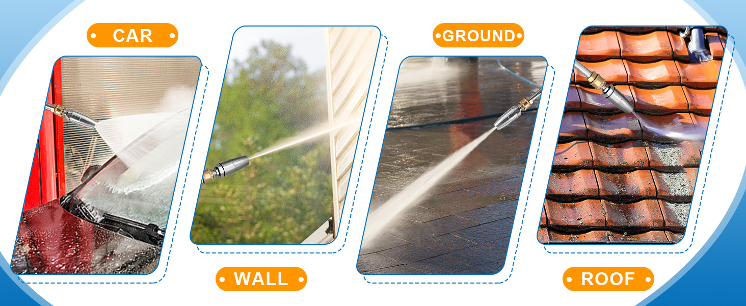 La buse turbo est dotée d'un jet d'eau rotatif qui améliore considérablement la pression du jet d'eau, donnant à la buse turbo du nettoyeur haute pression des performances de nettoyage supérieures et vous permettant de vous attaquer à de grandes zones de taches tenaces.