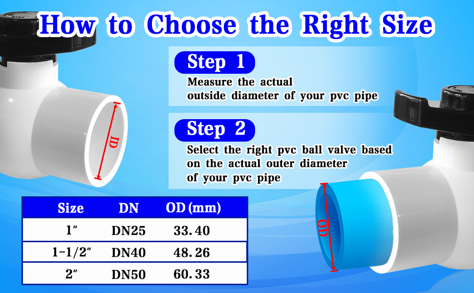 - Easy to Use : Our PVC ball valves are designed with oversized handles and anti-slip features, making it easy for users to open or close the valves and control the flow. Never have to worry about handle hard to turn again.