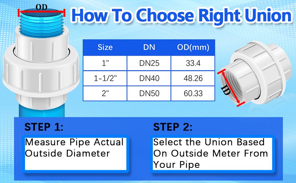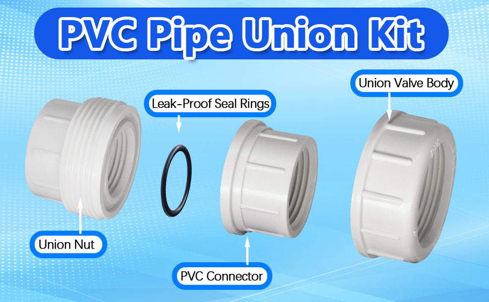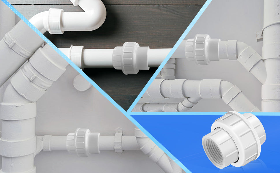 - Wide Application : Our PVC Pipe Unions suitable for indoor and outdoor use. It can be widely applied in the irrigation, sewer systems, water service lines, drain waste vents, to swimming pools, outdoor/indoor plumbing applications , etc.