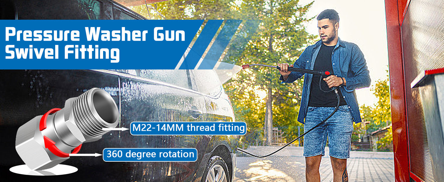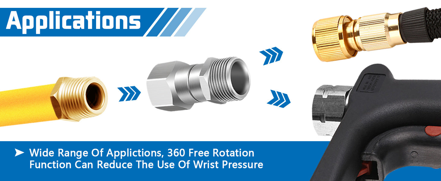 - 【Application】The pressure washer swivel fitting is suitable for a wide range of applications, from large commercial cleaning projects to smaller residential tasks. It can be used in various industries such as automotive, construction, and more. Its versatility makes it a valuable tool.