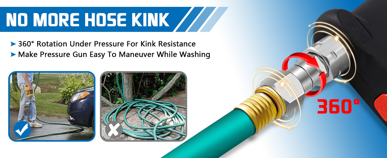 - ✔ Kink free swivel joint for pressure washer. Eliminates hose twist and no kink.