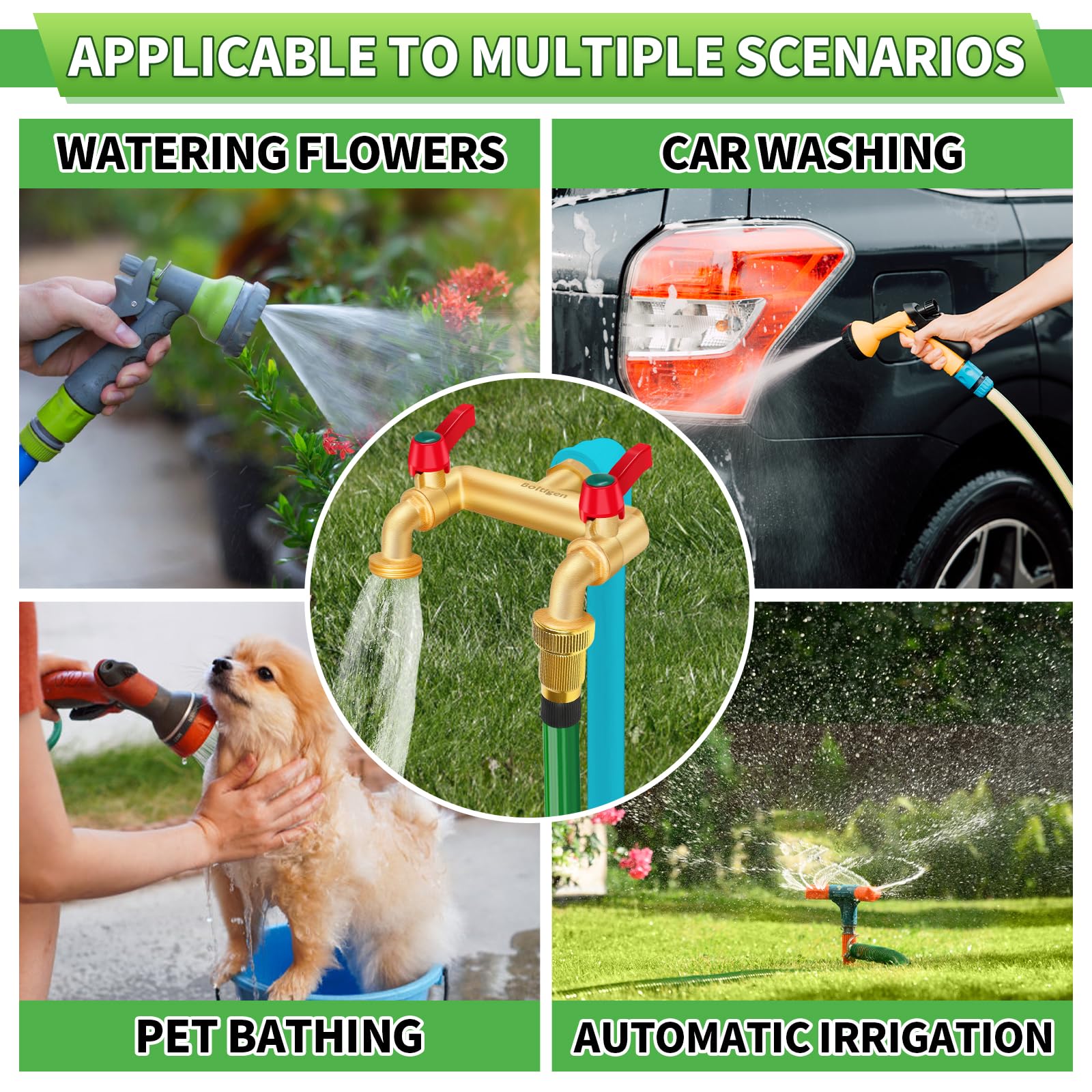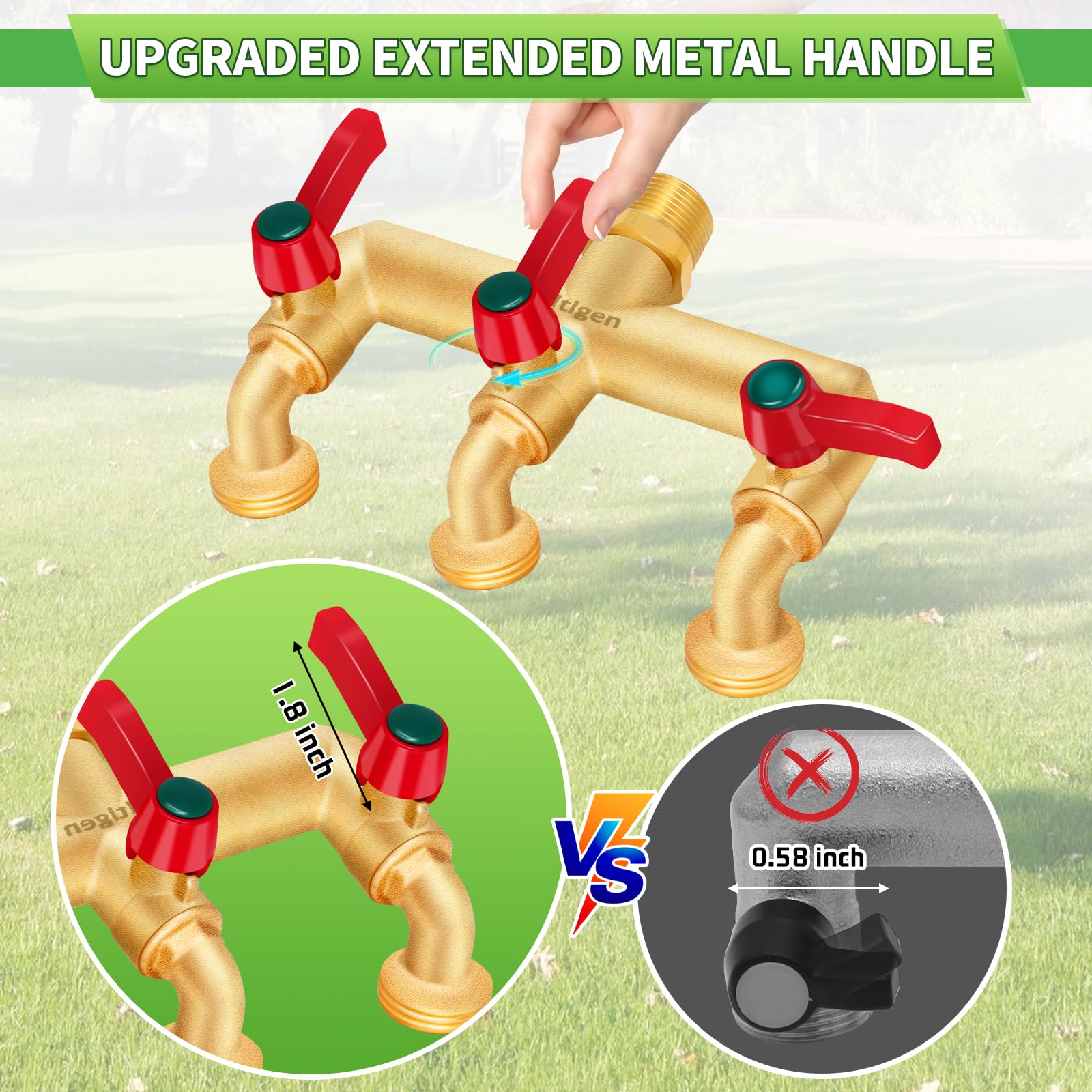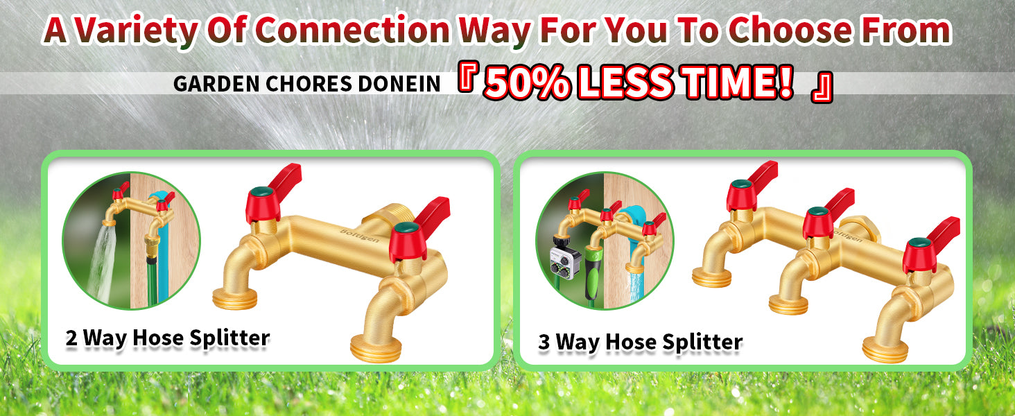 Designed with wider outlet spacing, allowing you to easily install more irrigation timers, providing more options for your garden and making your irrigation system smarter.Water Faucet ?
