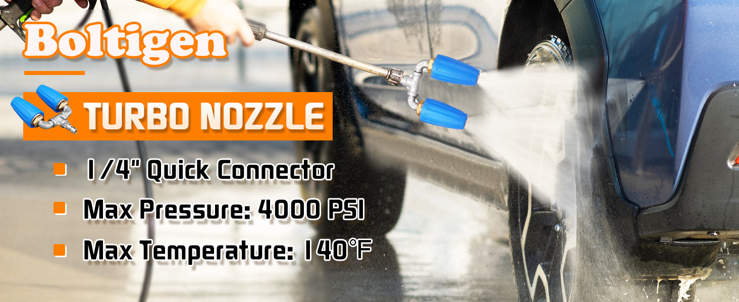 - 【Compatibility】Pressure washer turbo nozzle tips are equipped with a convenient 1/4 quick connect fitting, this turbo nozzle can be easily attached to most pressure washer gun or wand, providing a secure and hassle-free connection for seamless operation.